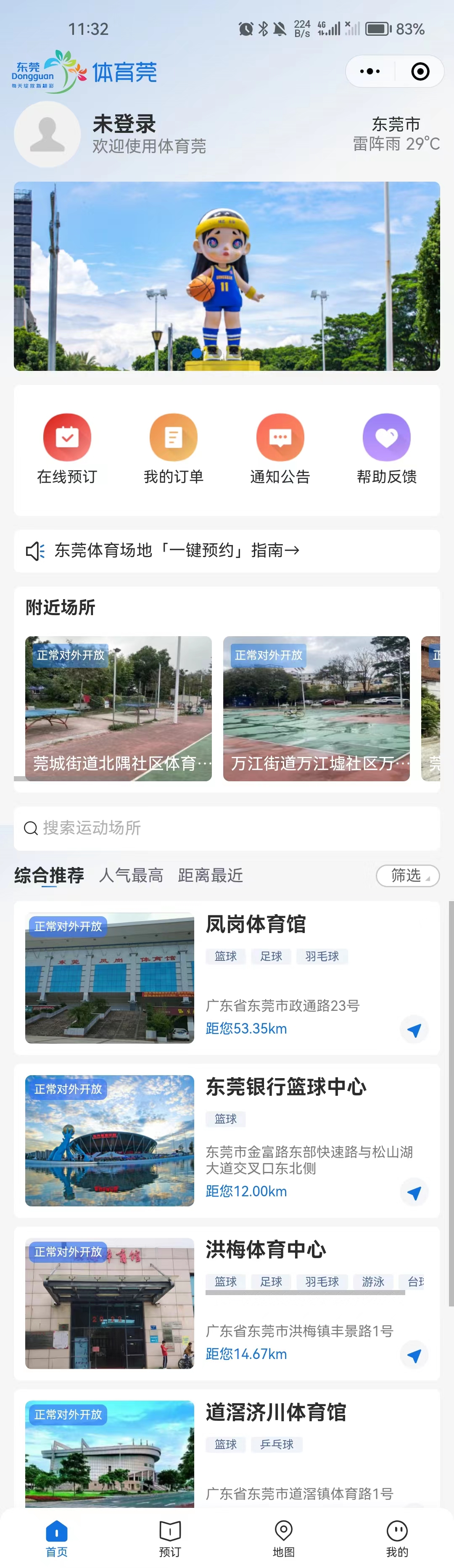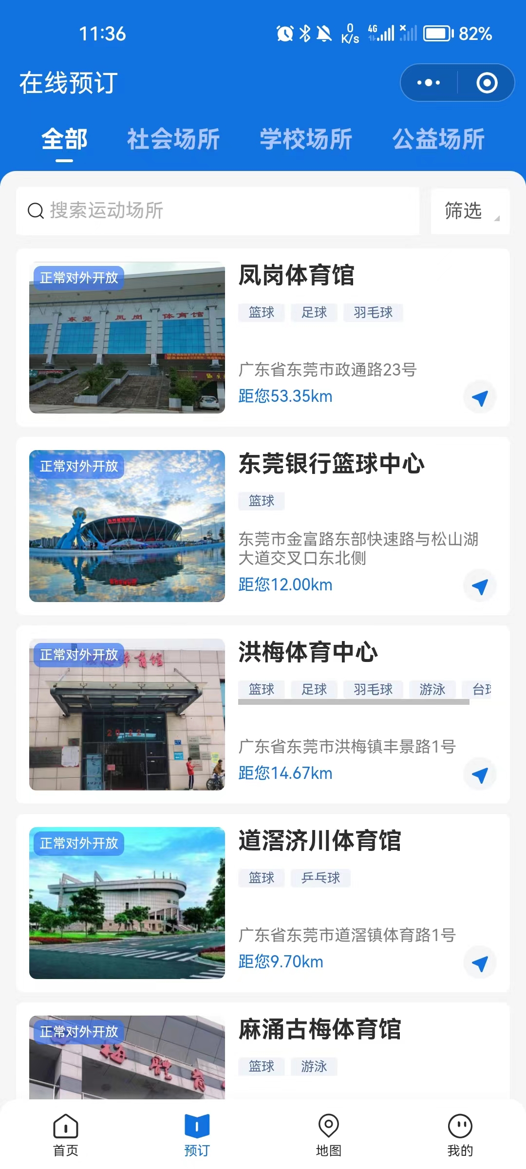 为响应全民运动、全民健身的号召,用户可以线上查找距离最近的运动场所,在线预约场地